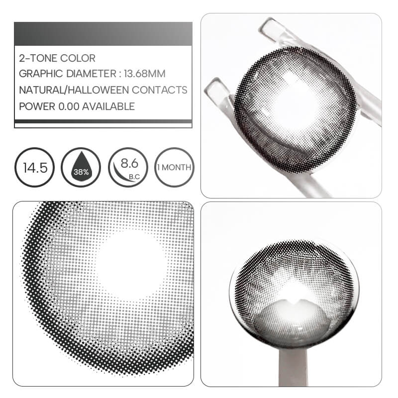 Elevate your gaze with our Two-Tone Cosmic Allure Contact Lenses, designed to seamlessly blend natural elegance with bold Halloween vibes. Featuring a 13.68mm graphic diameter, these lenses create a mesmerizing, light-inspired brilliance that enhances your eyes for both everyday wear and costume events.
