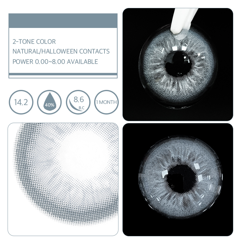 Glacier II Blue lenses blend icy, crystalline blue tones with a delicate silvery shimmer for a multidimensional look. These lenses are designed for a soft, ethereal gaze or a bold fashion statement, these blue colored contacts deliver exceptional comfort and high-definition realism.
