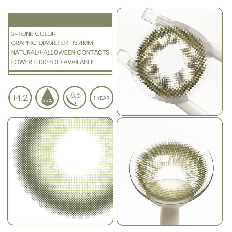 Enhance your natural beauty with our Glacier Colored Contacts, featuring a stunning 2-tone color design and a graphic diameter of 13.4mm. Perfect for achieving a natural look or creating a bold Halloween costume, these lenses are available in a wide range of powers from 0.00 to 8.00. Designed with intricate details that mimic the iris's crypts and furrows, these contacts add depth and dimension to your eyes, making them truly captivating.
