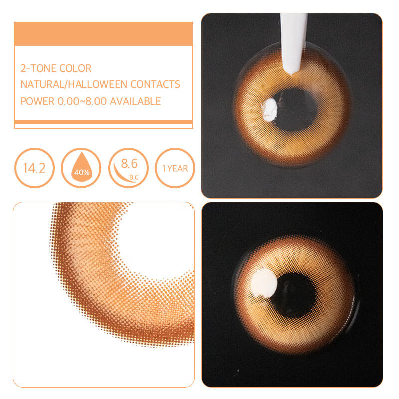 Inspired by the lemon, these yellow contact lenses feature an intricate blend of aquatic and amethyst tones, delicately highlighted with silvery accents for a multidimensional yet naturally enhancing effect.
