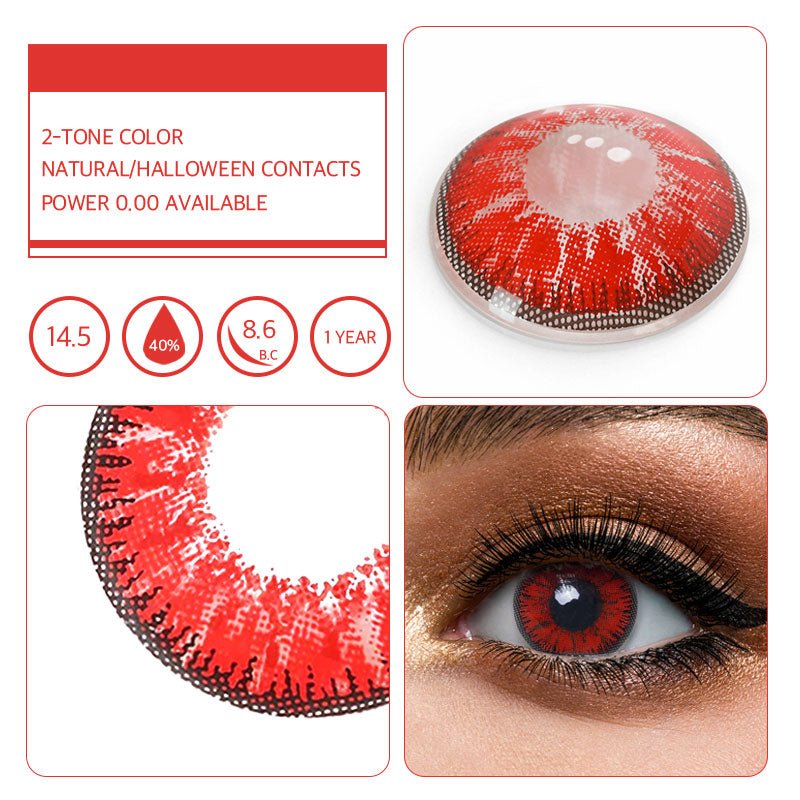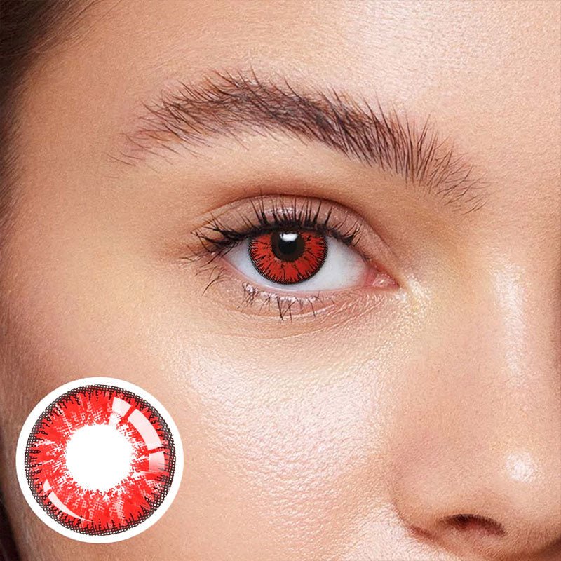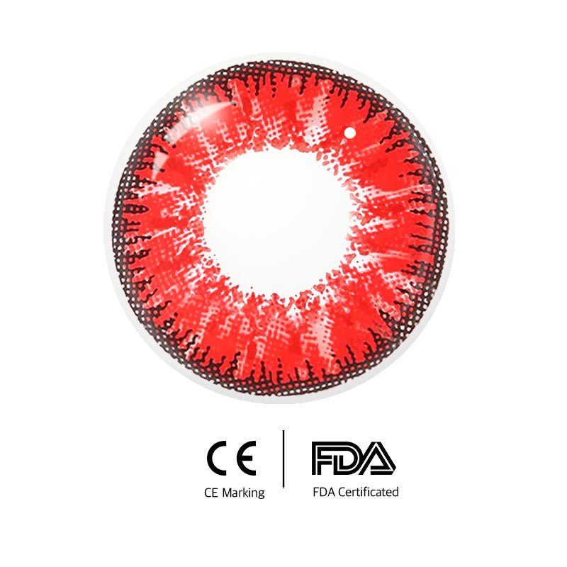 Discover the allure of our Unibling Mystery Red colored contacts. Designed based on real human eyes, these yearly wear lenses feature an elegant and sexy red lined pattern.