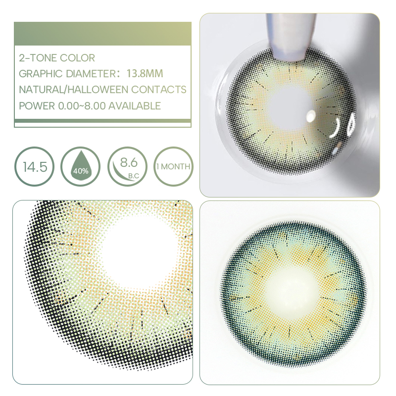 Evoking the gentle radiance of a morning sunrise, Oasis Jade showcases a seamless two-tone gradient blending sunny yellow with soothing green undertones. Mirroring the delicate balance of a dawning day, this lens offers a captivating transformation. Its intricate dark accents create a complex yet harmonious enhancement