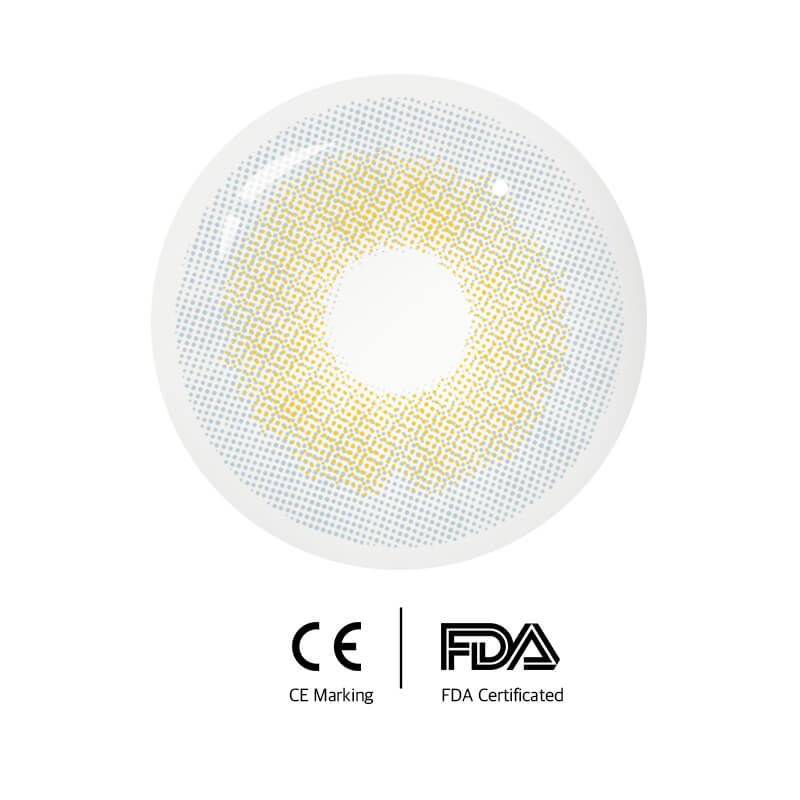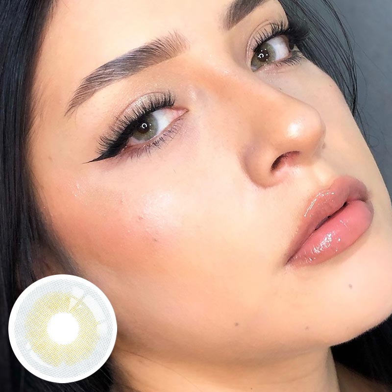 Polar Light Yellow Green transforms each of your gaze. Simple but not boring, palm area colored contact lenses have the purest sand color and deliver the most natural looking yellow eyes you've ever seen. The pattern of the natural iris rimless, your eyes will look completely natural.