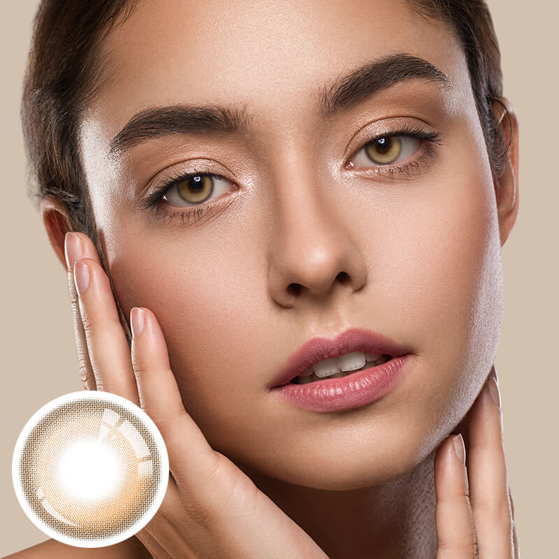 Pudding Caramel two-tone lenses are crafted to impart a soft, natural hazel radiance to your eyes, accented with warm amber highlights. This delicate blend of hues delivers a strikingly natural effect, ideal for subtly enhancing your innate eye color.