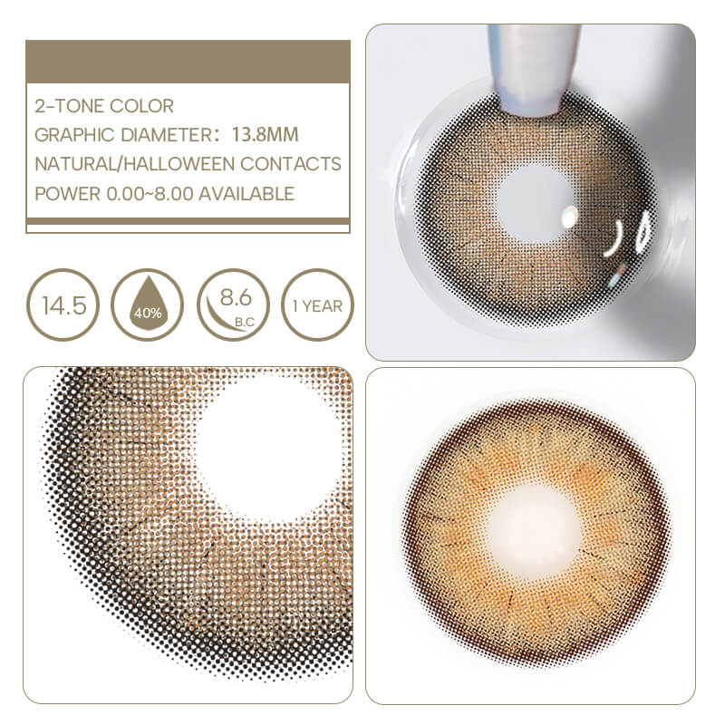 Evoking the warm radiance of sun-kissed mocha, Sandy Twilight showcases a seamless two-tone gradient blending rich brown hues with golden undertones. Mirroring the intricate beauty of natural eyes, this lens offers a captivating transformation. Its subtle play of light and shadow creates a harmonious enhancement, ensur