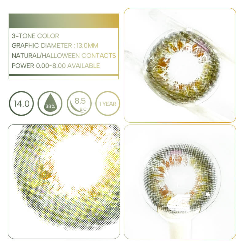 Achieve a stunning, natural eye-enhancing effect with our 3-tone brown contact lenses, designed with irregular dot patterns to mimic the authentic texture of a real human iris. Perfect for both daily wear and Halloween costumes, these lenses provide a subtle yet dramatic look with a 13.2mm graphic diameter for seamless coverage.